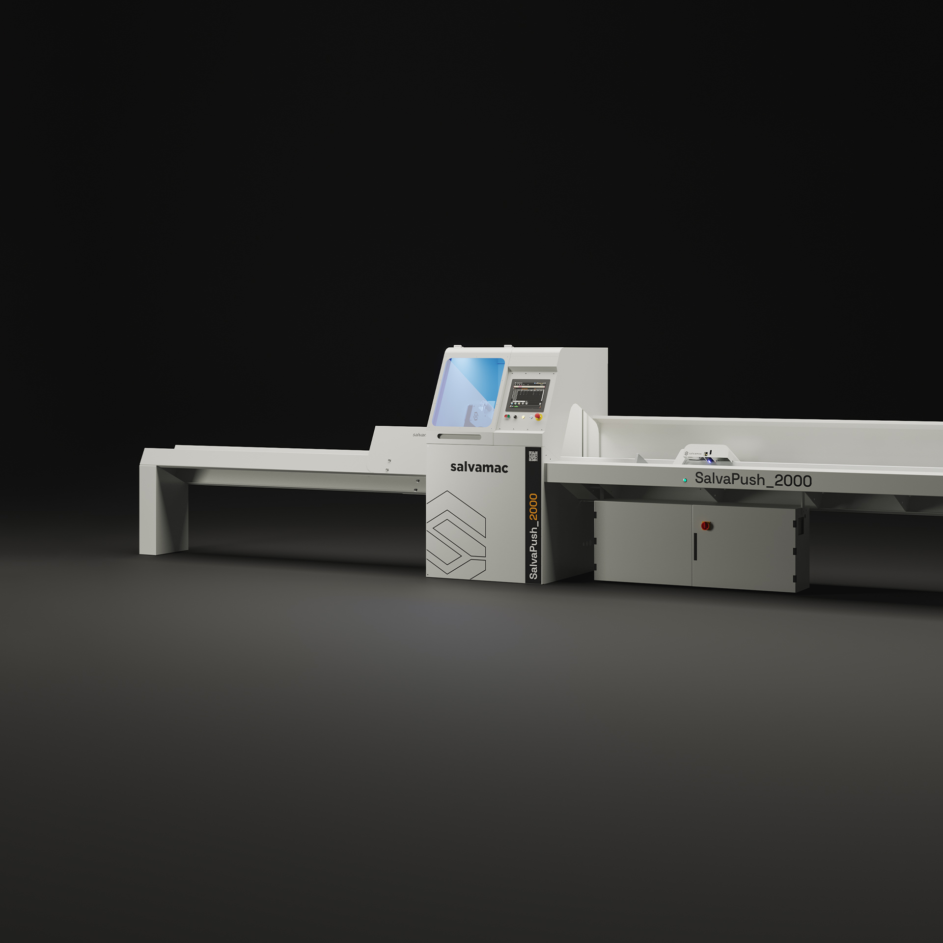 The SalvaPush 2000 is an advanced optimizing saw from Salvamac, offering high-speed, computer-controlled cutting accuracy. With integrated push-feed automation, barcode reading, and optimization software, it ensures minimal waste and maximum throughput.