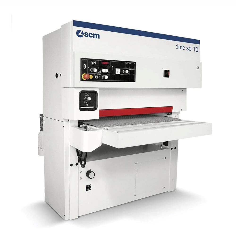 The SCM DMC SD 10 is a versatile wide-belt sander and calibrator designed to meet all solid wood sanding and calibration requirements. Its automatic table positioning ensures precise machining at all times by detecting workpiece thickness, with decimal settings allowing independent adjustment of the material removal depth. The diamond-shaped transport belt provides superior traction and stability, preventing slipping and supporting workpieces securely during processing. Compact in size, the DMC SD 10 maximizes workshop floor space while maintaining high performance and production potential.