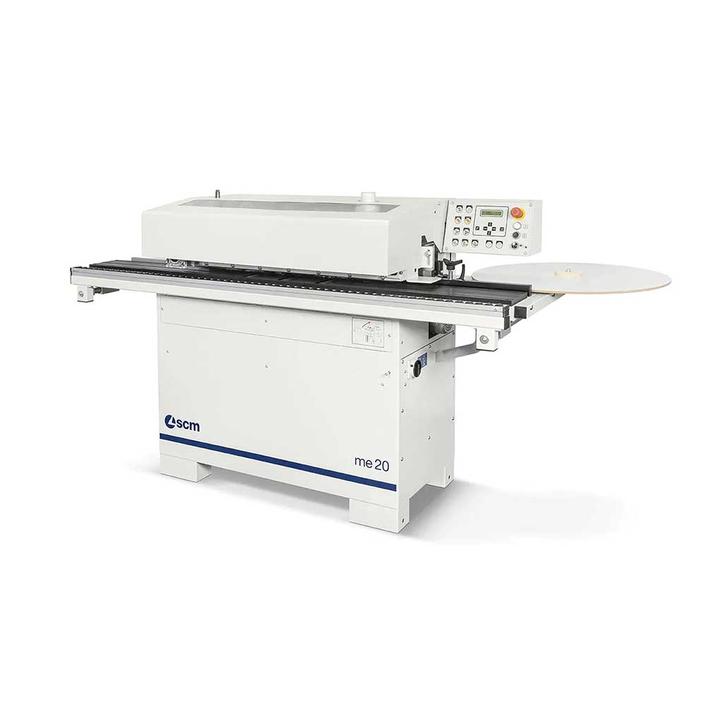 The SCM ME 20 Edgebander combines simplicity, precision, and efficiency for high-quality edge banding in a wide range of materials, including PVC, ABS, melamine, laminate, and wood. Its front-mounted control panel allows intuitive, error-free operation, guiding the operator through all main functions and maintenance tasks via the PLC system. Rapid and even glue heating, automatic temperature adjustment during production pauses, and an innovative self-lubricating glue pot ensure consistent, high-performance edge application. Dual rollers press the edge evenly, while the glue spreading roller maintains uniform coverage at maximum working temperature, even on taller panels. Precision cutting is achieved directly from the panel reference, eliminating the need for manual adjustments, and slide copying pads enable perfect alignment for straight or radius trimming. Edge thickness is easily set with two numerical readouts, delivering reliable, versatile, and professional finishing for every project.